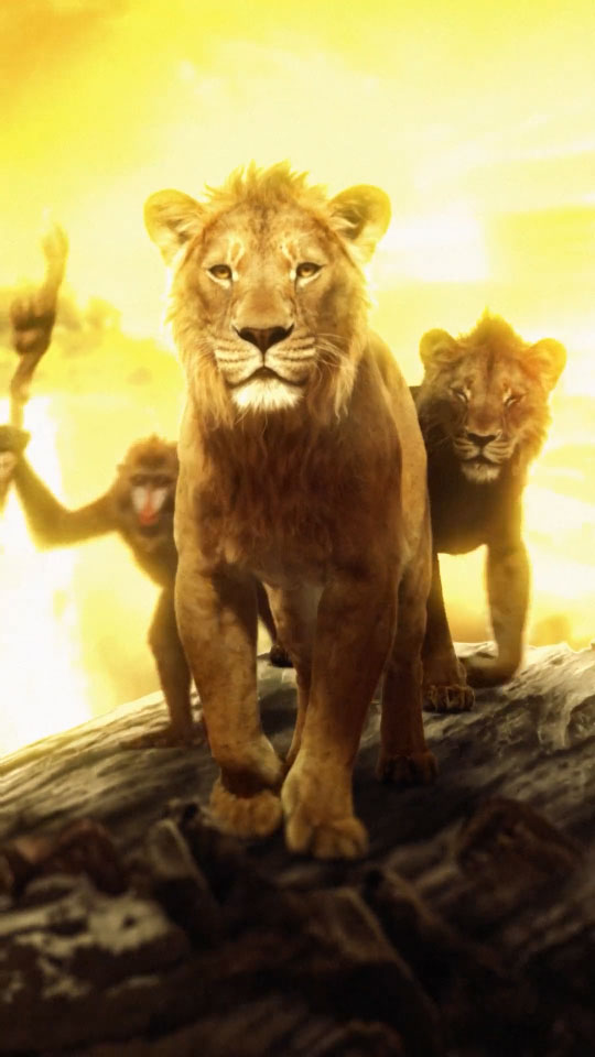 Footage of the animals walking was tracked on top of a 3D rock I built with projection mapping, creating the illusion of the animals walking in a 3D space. The bird Zazu flying in front of the camera transitions the footage of the animals to the still animals from the final poster art. Subtle fractal noise animates the waterfall in the far background, making the water appear to flow.