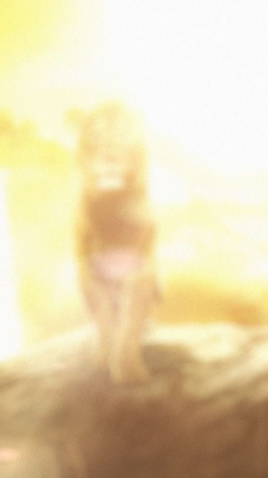 Footage of the animals walking was tracked on top of a 3D rock I built with projection mapping, creating the illusion of the animals walking in a 3D space. The bird Zazu flying in front of the camera transitions the footage of the animals to the still animals from the final poster art. Subtle fractal noise animates the waterfall in the far background, making the water appear to flow.